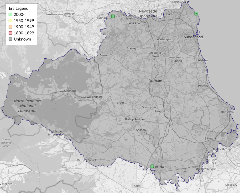 This map shows all records of Red/Dark-barred Twin-spot Carpet agg. - Xanthorhoe spadicearia/ferrugata in the Durham (VC66) database per monad (1km grid square). The map can be explored further by zooming and panning, can be reset using the button on the left, and can be filtered by selecting the era. Click on a monad to view a full list of species recorded in it, or its containing hexad (10km grid square).
