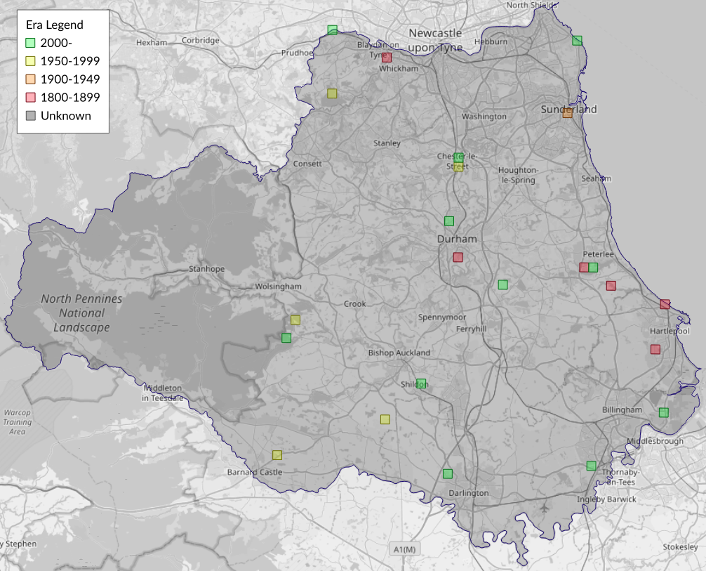 This map shows all records of Great Brocade - Eurois occulta in the Durham (VC66) database per monad (1km grid square). The map can be explored further by zooming and panning, can be reset using the button on the left, and can be filtered by selecting the era. Click on a monad to view a full list of species recorded in it, or its containing hexad (10km grid square).