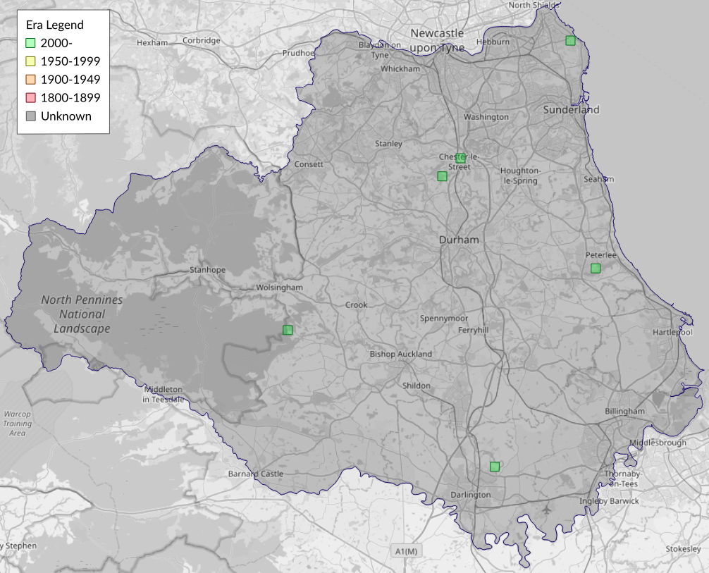 This map shows all records of Marbled White Spot - Protodeltote pygarga in the Durham (VC66) database per monad (1km grid square). The map can be explored further by zooming and panning, can be reset using the button on the left, and can be filtered by selecting the era. Click on a monad to view a full list of species recorded in it, or its containing hexad (10km grid square).