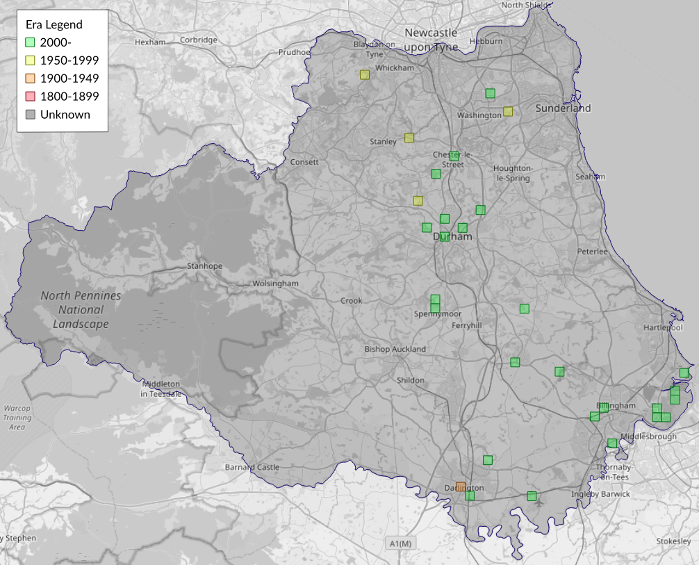 This map shows all records of - Hedya salicella in the Durham (VC66) database per monad (1km grid square). The map can be explored further by zooming and panning, can be reset using the button on the left, and can be filtered by selecting the era. Click on a monad to view a full list of species recorded in it, or its containing hexad (10km grid square).