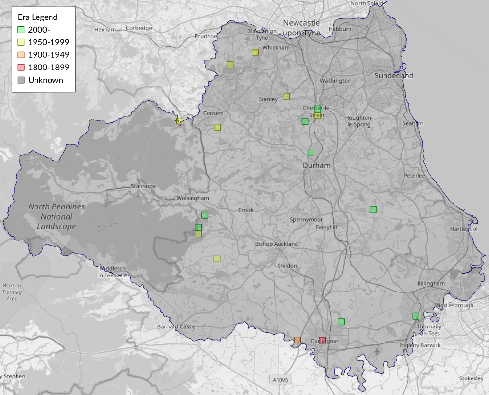 This map shows all records of Spotted Shoot Moth - Rhyacionia pinivorana in the Durham (VC66) database per monad (1km grid square). The map can be explored further by zooming and panning, can be reset using the button on the left, and can be filtered by selecting the era. Click on a monad to view a full list of species recorded in it, or its containing hexad (10km grid square).